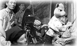 「人形劇映画こがね丸」撮影風景