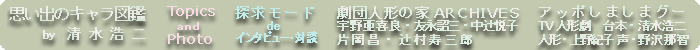 このページです 劇団人形の家公式ホームページへのリンクです アッポしましまグー清水浩二へのインタヴューページへのリンクです 探求モードdeインタビュー・対談へのリンクです 「Topics and Photo」コーナーへのリンクです